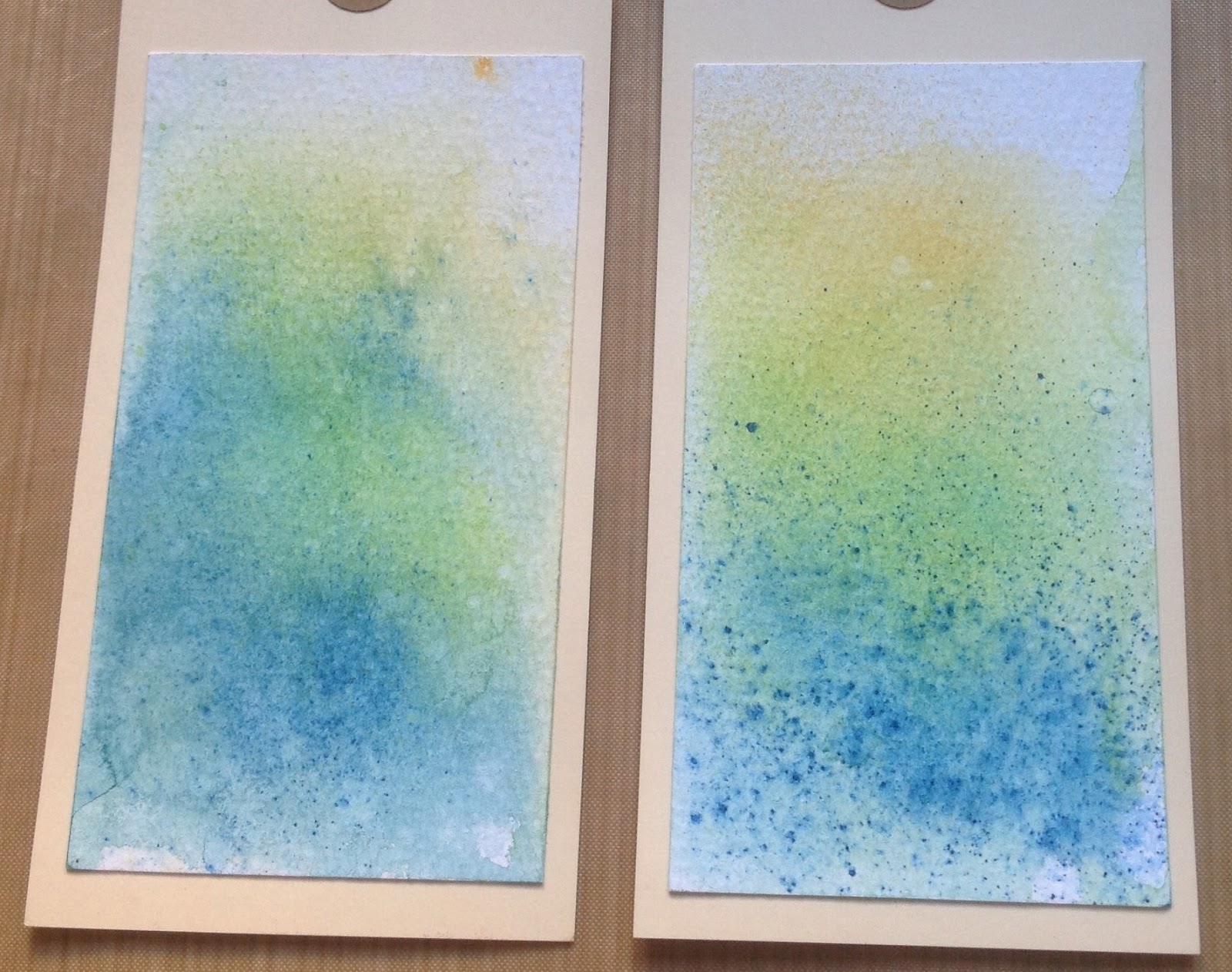 Day 2 - Spritzed watercolour - I used Letraset Aquamarkers since I don't own any distress markers. I can see they react in a different way, but I do like the results and it's a good way to try out techniques with the supplies you do have.